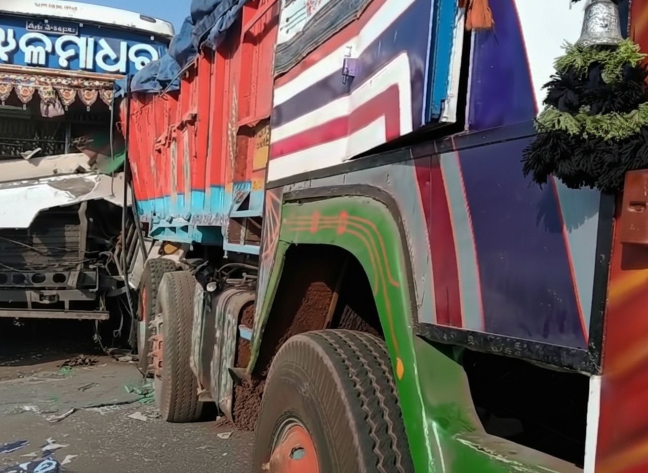 According to reports, the accident occurred when a bus named Nilamadhab, travelling from Narsinghpur to Baripada, rammed into the truck from the rear.